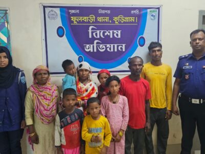 প্রহলাদ মন্ডল সৈকত, কুড়িগ্রাম প্রতনিধি: কুড়িগ্রামের ফুলবাড়ী উপজেলার কাশিপুর ইউনিয়নের ধর্মপুর সীমান্ত দিয়ে ৯ বাংলাদেশীকে পুশইন করেছে ভারতীয় সীমান্ত রক্ষী বাহিনী বিএসএফ। এদের মধ্যে নারী, শিশু ও পুরুষ সদস্য রয়েছে।