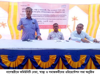 রবিবার (২২ জুন) সকাল ১১টায় কুড়িগ্রামের নাগেশ্বরী উপজেলার নেওয়াশী ইউনিয়নের গিড়ার পাড় পানাকুড়িতে ওয়ার্ল্ড ভিশন বাংলাদেশের এসএসবিসি প্রকল্পের স্ট্রেনদেনিং সোশ্যাল এন্ড বিহেভিয়ার চেঞ্জ প্রকল্পের আয়োজনে ও ইউনিসেফের অর্থায়নে এ ওরিয়েন্টেশন সভা অনুষ্ঠিত হয়।
