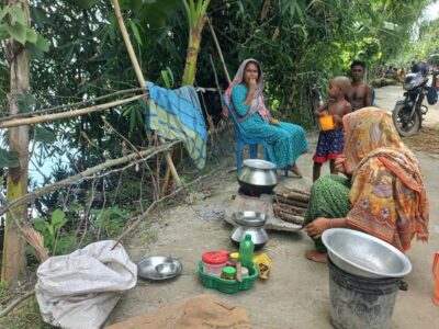 বসতবাড়িতে পানি ওঠায় দুর্ভোগে পড়েন এলাকার মানুষ। গবাদি পশু নিয়ে বিপাকে পড়েছেন অনেকে। পানির তোড়ে ভেঙে যায় রাস্তাঘাটও। ঘরবাড়িতে পানি ওঠায় রাস্তায় চুলা জ্বালিয়ে রান্না করছেন, আবার কেউ কেউ রাস্তার ধারে একচালা ঘর করে গরু ছাগল নিয়ে বিছানা পেতেছেন।
