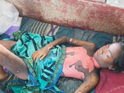 প্রহলাদ মন্ডল সৈকত, কুড়িগ্রাম প্রতিনিধিঃ কুড়িগ্রামের নাগেশ^রীতে পল্লী চিকিৎসকের কাছে জ¦রের চিকিৎসা নিতে গিয়ে নুরজাহান নামে এক কন্যা শিশুর সারা শরীরের চামড়া পুড়ে কালো হয়ে গেছে। সুস্থ্য স্বাভাবিক মেয়ের এমন অস্বাভাবিক চেহারা দেখে আতংকিত ও বাকরুদ্ধ হয়ে পরেছেন অভিভাবকরা। এদিকে ফোসকা পরা শরীরে প্রচন্ড যন্ত্রনা নিয়ে বিছানায় কাতরাচ্ছে শিশু নুরজাহান। পল্লী চিকিৎসক আলমগীর হোসেনের দাবি তিনি রোগীকে জ¦রের ঔষধ দিয়েছেন মাত্র। কোন ভুল চিকিৎসা দেননি। এ ঘটনার পর যন্ত্রনাকাতর শিশুটিকে উন্নত চিকিৎসার জন্য গত ১ আগস্ট রংপুর মেডিকেল কলেজ হাসপাতালে ভর্তি করা হয়েছে।