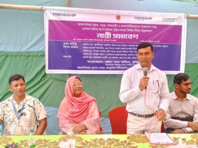 সুশাসন প্রকল্পের ভূমিকা: ফ্রেন্ডশিপের সুশাসন প্রকল্পের এ্যাসিসটেন্ট প্রজেক্ট অফিসার মোঃ আব্দুল মান্নান সুশাসন প্রকল্পের উদ্দেশ্য ও কার্যক্রম সম্পর্কে বিস্তারিত আলোচনা করেন। তিনি বলেন, প্রকল্পটির মূল লক্ষ্য হলো নাগরিকদের অংশগ্রহণমূলক উদ্যোগের মাধ্যমে সুশাসন প্রতিষ্ঠা, সামাজিক জবাবদিহিতা বৃদ্ধি এবং স্থানীয় পর্যায়ে সেবার মান উন্নয়ন।
