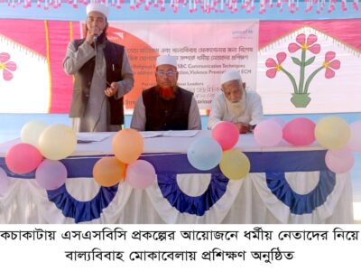 কচাকাটায় এসএসবিসি প্রকল্পের আয়োজনে ধর্মীয় নেতাদের নিয়ে বাল্যবিবাহ মোকাবেলায় প্রশিক্ষণ অনুষ্ঠিত