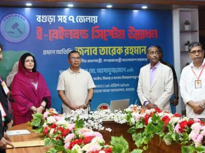 বগুড়া প্রতিনিধি: বগুড়ায় সফররত প্রধানমন্ত্রী তারেক রহমান জজ আদালতে ই-বেইল বন্ড সেবার আনুষ্ঠানিক উদ্বোধন করেছেন।