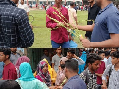 হাবিবুর রহমান: কুড়িগ্রামের চিলমারীতে “এসএসসি- ২৬সালের পরিক্ষার্থীদের মাঝে ফুলের শুভেচ্ছা ও কলম বিতরণ” করা হয়েছে। মঙ্গলবার (২১শে এপ্রিল) সকাল বেলায় উপজেলা ছাত্রদলের যুগ্ম আহ্বায়ক ও জুলাই যোদ্ধা জামিউল ইসলাম জনির উদ্যোগে, থানাহাট এ ইউ পাইলট সরকারি উচ্চ বিদ্যালয় পরীক্ষার কেন্দ্রে। উপজেলার “এসএসসি” সকল পরিক্ষার্থীদের মাঝে, ফুলের শুভেচ্ছা (ভালোবাসা) ও কলম বিতরণ করা হয়েছে। এ সময় উপস্থিত ছিলেন, উপজেলা ছাত্রদলের যুগ্ম আহ্বায়ক ও জুলাই যোদ্ধা জামিউল ইসলাম জনি। পরে এই ছাত্রনেতারা পরীক্ষার্থীদের আন্তরিক শুভেচ্ছা জানিয়ে তাদের উজ্জ্বল ভবিষ্যৎ কামনা করেন এবং মনোযোগ সহকারে পরীক্ষা দেওয়ার জন্য আহ্বান জানান। এ সময় আরও উপস্থিত ছিলেন, চিলমারী সরকারি কলেজ ছাত্রদলের সাবেক যুগ্ম আহ্বায়ক রাব্বি হাসান, চিলমারী সরকারি কলেজ ছাত্রদলের সহ-সাংগঠনিক সম্পাদক রাকিবুল হাসান রিদয়, প্রচার সম্পাদক তামিম ইকবালসহ আরও অনেকে উপস্থিত ছিলেন। এ ধরনের উদ্যোগ শিক্ষার্থীদের মাঝে উৎসাহ ও অনুপ্রেরণা জোগাবে বলে, আশা প্রকাশ করেন তারা।